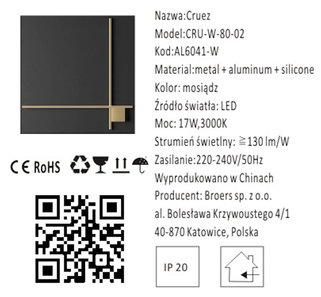 Blask w Mosiądzu: Cruez to nie tylko kinkiet, to źródło wyjątkowego blasku mosiądzu, które rozświetli Twoje wnętrze niczym klejnot. Złote elementy metalowe i efektywne diody LED tworzą harmonię designu i funkcjonalności, idealną dla różnych stylów wnętrz.
