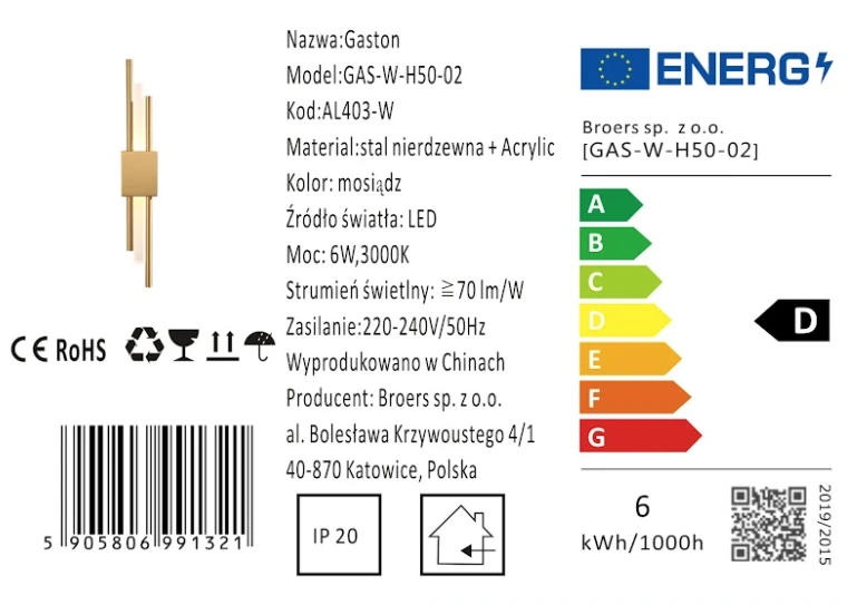 Kinkiet Gaston to wyjątkowe połączenie nowoczesnego designu z funkcjonalnością. Wykonany z wysokiej jakości materiałów, takich jak metal i akryl, wyróżnia się eleganckim wykończeniem w odcieniu mosiądzu (złotym) oraz białym, matowym akrylem. Idealnie komponuje się z wnętrzami w stylu nowoczesnym, glamour czy industrialnym, dodając im szyku i przytulności dzięki ciepłemu światłu LED o barwie 3000K.