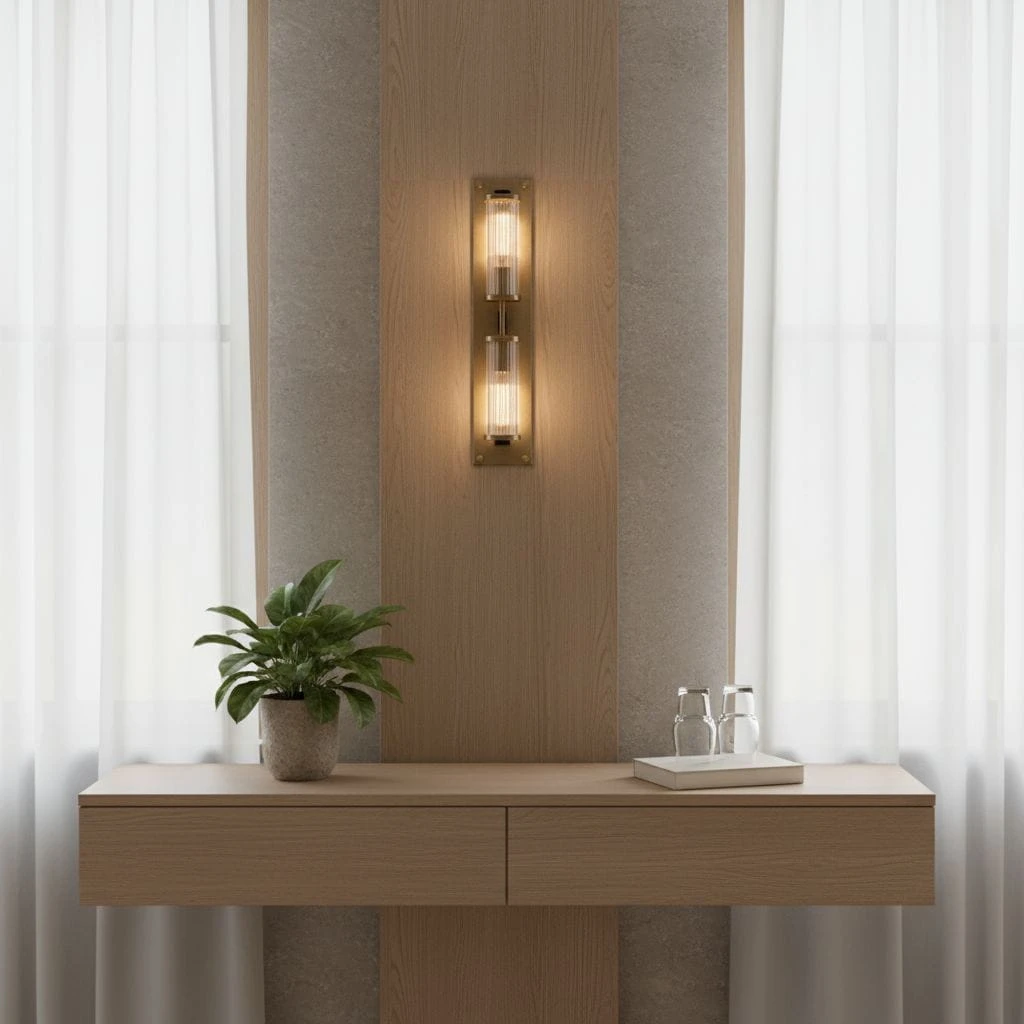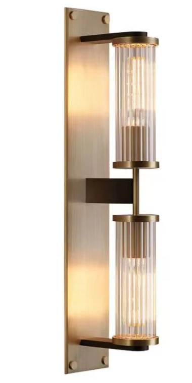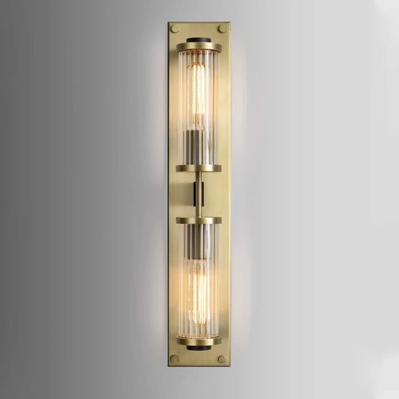 Elegancki kinkiet Girona to duży model ścienny o wysokości aż 70 cm, który przyciąga wzrok luksusowym połączeniem szczotkowanego mosiądzu z patyną oraz dekoracyjnych kryształowych elementów. Zaprojektowany z myślą o wnętrzach, w których światło odgrywa kluczową rolę w budowaniu nastroju i stylu.