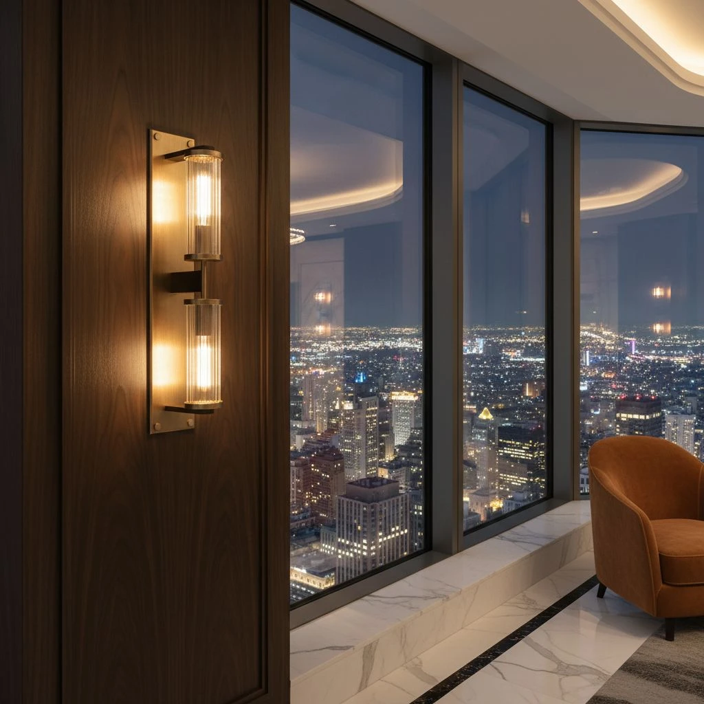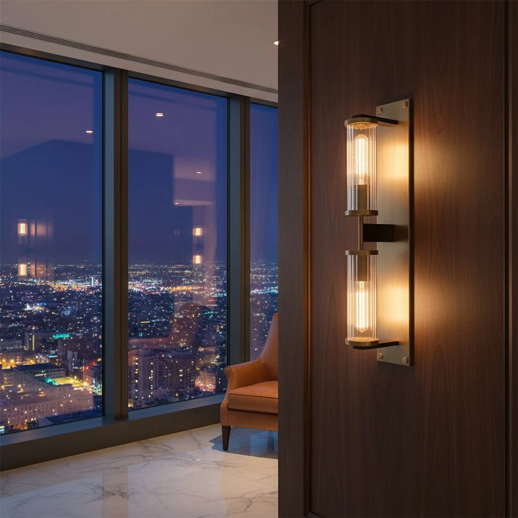 Zintegrowane źródła światła rozmieszczone są u góry i u dołu oprawy, co pozwala uzyskać nastrojowy efekt świetlny w dwóch kierunkach. Dodatkowo światło przechodzi przez szklane kryształy w formie pionowych patyczków, które zostały rozmieszczone dookoła żarówek – efektownie rozpraszają światło, tworząc subtelne refleksy i grę cieni na ścianie.