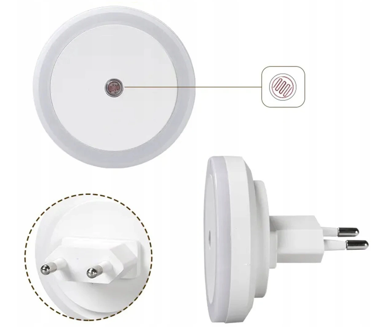 Lampka nocna LED zasilana bezpośrednio z gniazdka, wyposażona w czujnik zmierzchu – automatycznie włącza się w nocy i wyłącza w dzień. Zapewnia delikatne, przyjazne dla oczu światło, zwiększając poczucie bezpieczeństwa dziecka. Energooszczędna, z 4 diodami LED.