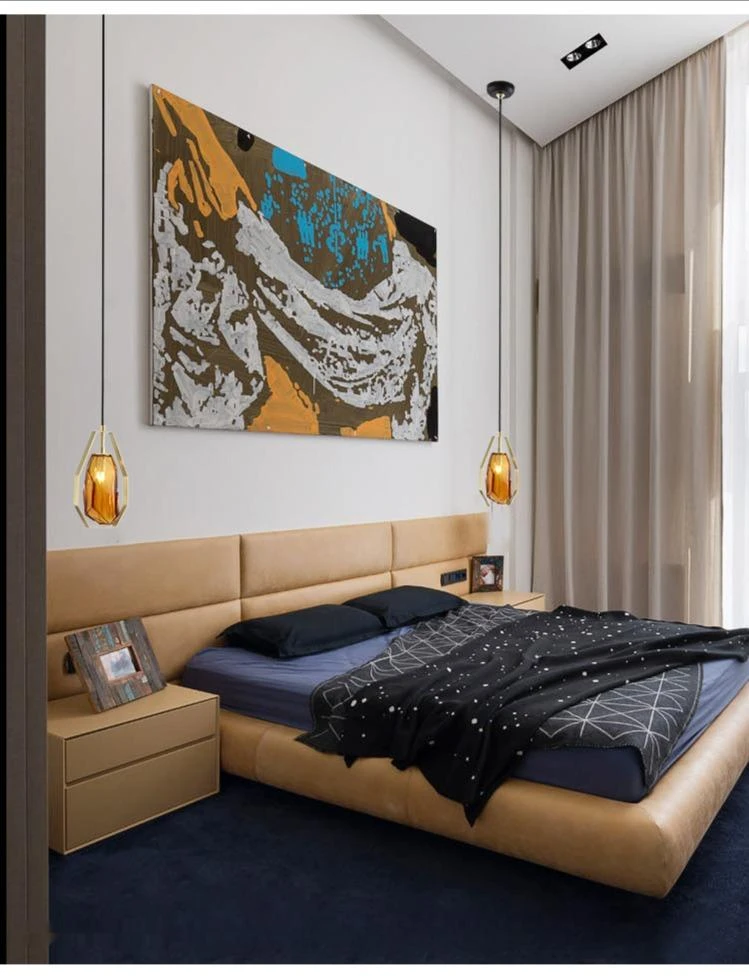 - Kolorystyka Lampy: Mosiądz szczotkowany + szkło bursztynowe