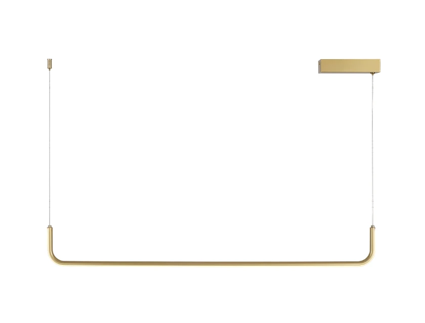 Smukła lampa liniowa wisząca o długości 90 cm, wykonana z aluminium i silikonu w eleganckim złotym wykończeniu. Emituje ciepłe, równomierne światło, idealne nad stołem, wyspą kuchenną, w gabinecie lub przestrzeniach komercyjnych.