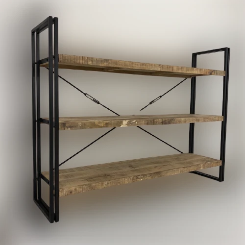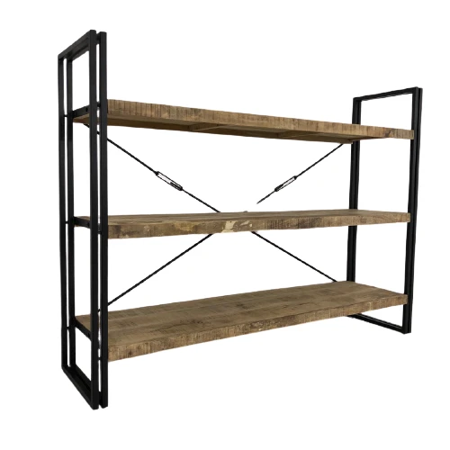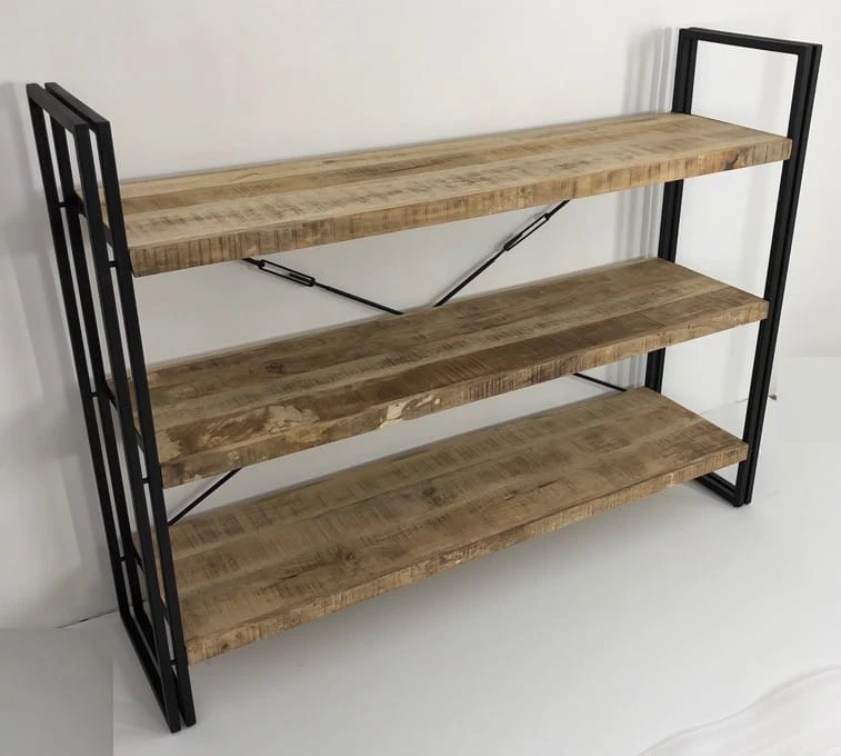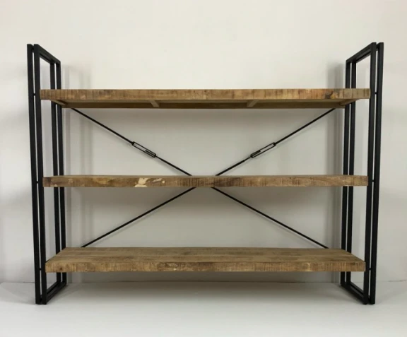 Portland 3 - regał industrialny, drewno egzotyczne mango, stal, 3 półki, 120cm