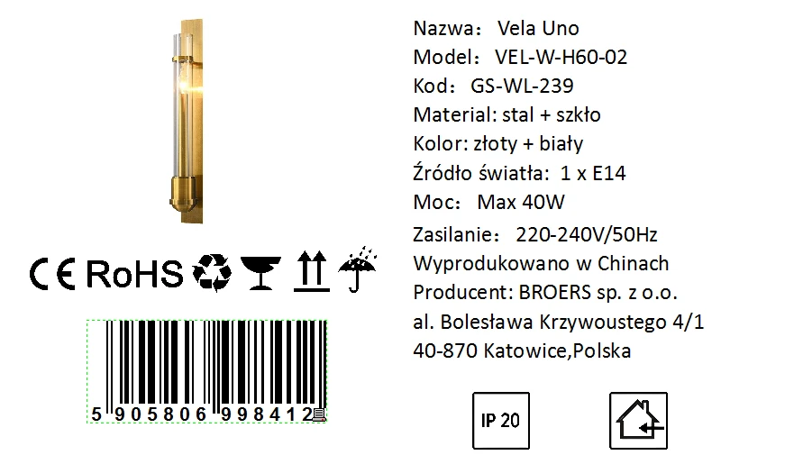 - Źródło światła: 1xE14 (żarówka nie jest w zestawie)